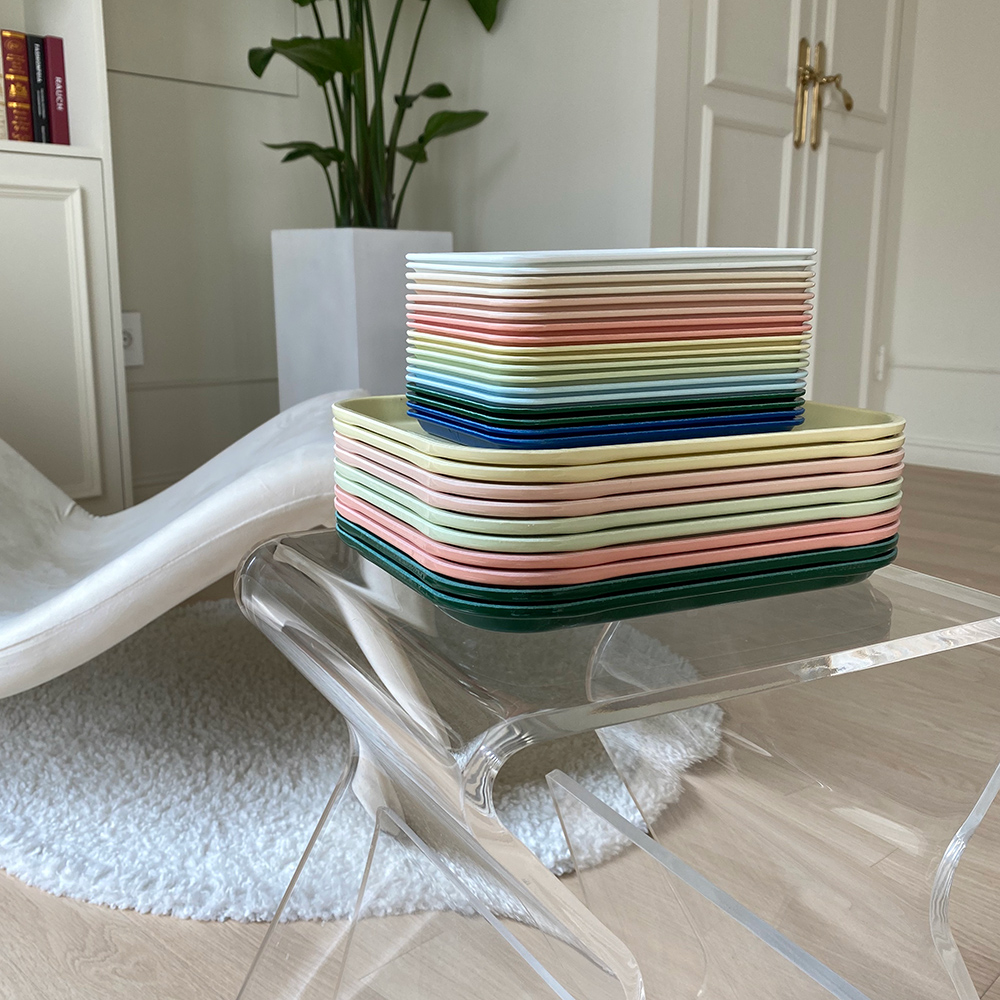 미국 Cambro의 캠트레이는 유리섬유 소재로 가벼우면서도 충격에 강하기로 유명합니다. 표면에 섬유질 패턴이 보이는 특징이 있습니다. 사이즈별, 컬러별로 다양한 용도로 사용하기 좋은 아이템이죠. 여러분의 공간도 감각적인 편집샵처럼 연출해주세요. 디저트부터 소품까지 다양하게 올릴 수 있는 아이템입니다. 식기세척기 사용은 가능하지만 전자레인지는 사용 불가합니다. 스크래치를 방지하기 위해 부드러운 수세미를 사용해주세요.