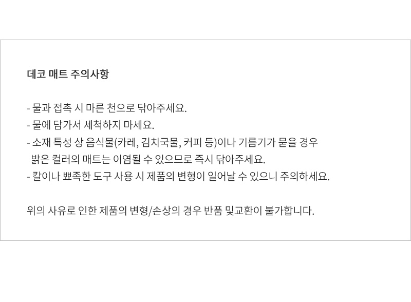 - 단순 변심에 의한 교환이나 반품은 고객님께서 왕복 택배비를 부담해주셔야 합니다.