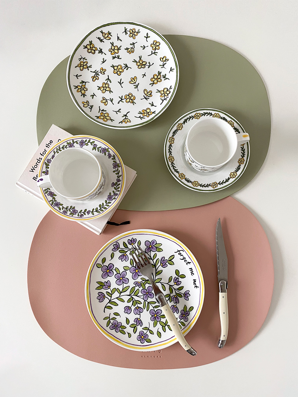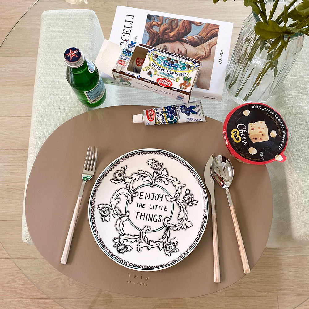 옐로우로 포인트를 준 뉴트럴 톤의 테이블