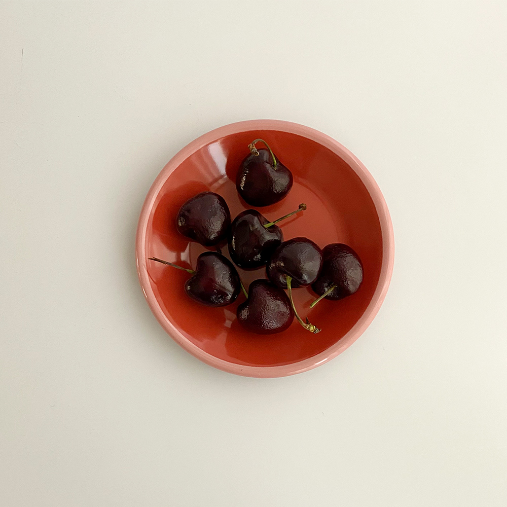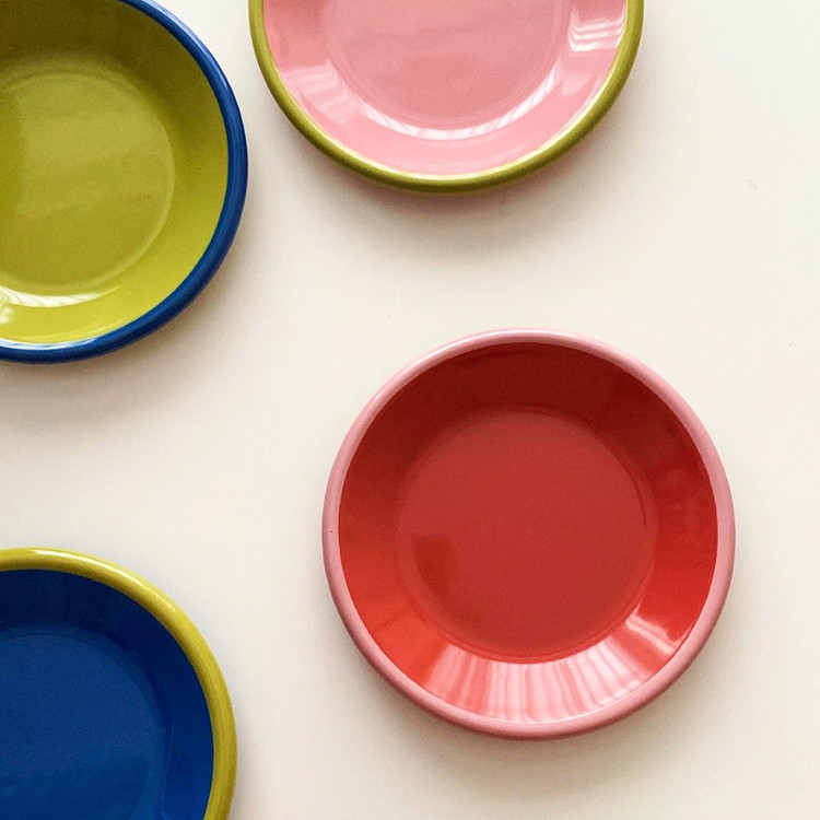 컬러라마 소스 플레이트 - 핑크(옐로우그린 림)