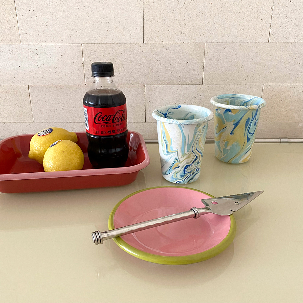 에나멜 도자기의 매혹적인 역사에서 영감을 받은 터키 출신의 두 자매가 런칭한 본 에나멜웨어. 현대적이고 독특한 핸드메이드 제품을 디자인/생산하는 100% 핸드메이드 프리미엄 법랑 브랜드입니다. 법랑은 금속 표면에 유리질 유약을 코팅한 제품으로 산성과 부식에 강한 소재입니다. 식기세척기, 오븐에 사용 가능하며 내구성이 좋아 가정에서 뿐만 아니라 캠핑이나 피크닉에도 함께하기 좋은 아이템입니다.