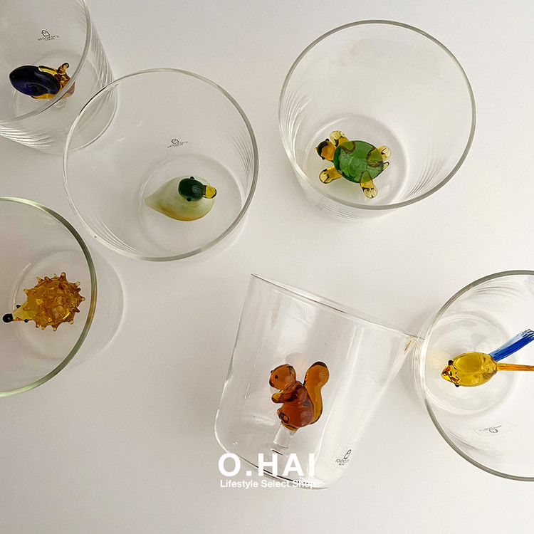 하나하나 어쩜 이리 귀여울까요? Alessandra Baldereschi의 컬렉션으로 동물들이 유리 텀블러 안에 표현되어 있어요. 작아 보이지만 400ml의 용량을 자랑하는 글라스에요. 다양한 음료에 사용하시기 좋으며 단독 오브제로도 추천해드립니다. 나와 닮은 건 어떤 모양인지 찾아보는 재미까지 있어요.
