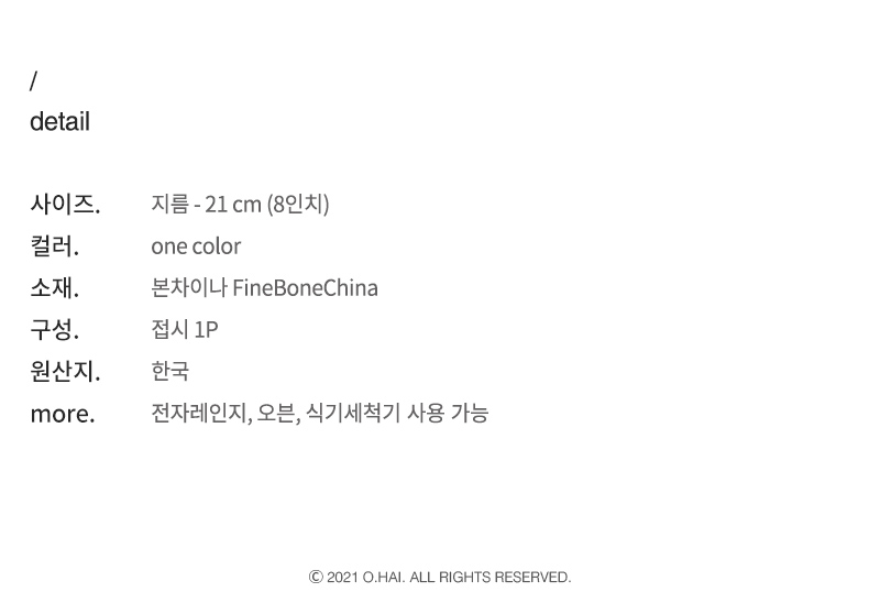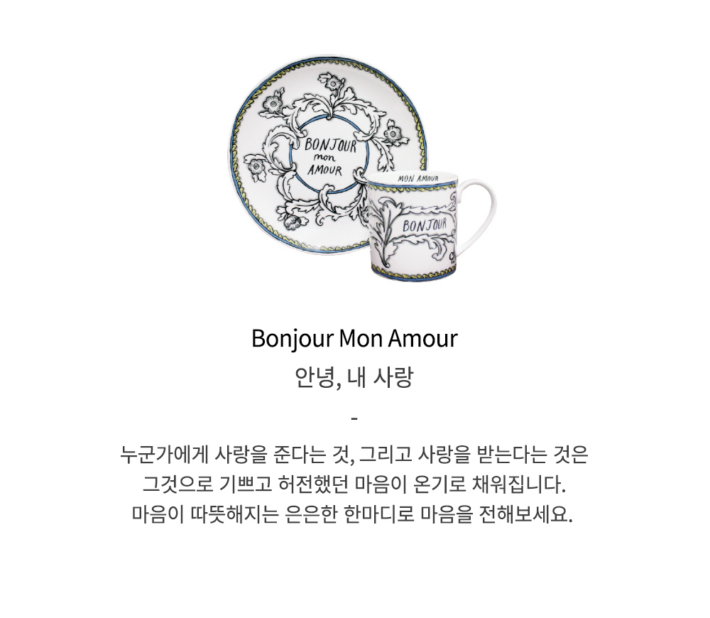 안녕 내사랑, 문구 마저 달콤한 아름다운 디쉬입니다. 질릴 틈이 없는 라운드 디쉬에 활용도가 좋은 8인치의 사이즈라 데일리로 사용하기 더욱 좋아요. 단순한 식기 뿐만 아니라 공간을 풍성하게 해 줄 오브제로도 좋습니다. 멋스럽게 그려낸 잉크팬 드로잉에 핑크와 민트의 포인트. 설레는 테이블을 완성시켜줄거예요.