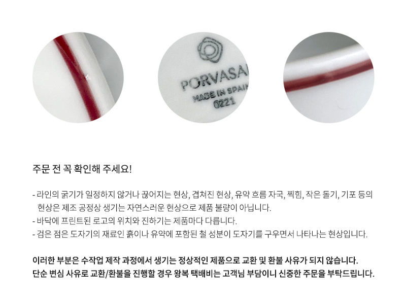 - 단순 변심에 의한 교환이나 반품은 고객님께서 왕복 택배비를 부담해주셔야 합니다.
