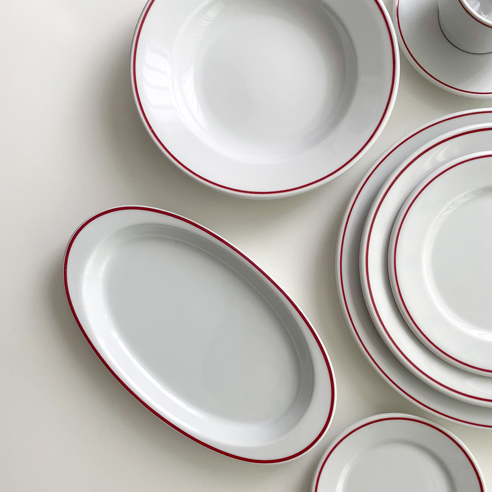 스페인 도자기 브랜드 폴바살의 레드 라인 버전입니다. 새로운 계절을 위해 컬러에 포인트를 주는건 어떠세요? 폴바살의 도자기들은 견고하고 내구성이 좋아 오래 소장할 수 있습니다. 매년 크리스마스 시즌에도 사랑받을 아이템들이지요. 쨍한 레드가 아닌 오래도록 질리지 않을 은은한 버건디 풍 레드입니다. 활용하기 좋은 라운드, 포인트가 되어줄 오발, 파스타나 국물이 있는 요리에 좋은 딥. 거기에 설명이 필요 없는 커피컵과 소서까지. 사랑스러움 가득한 디쉬 시리즈입니다.