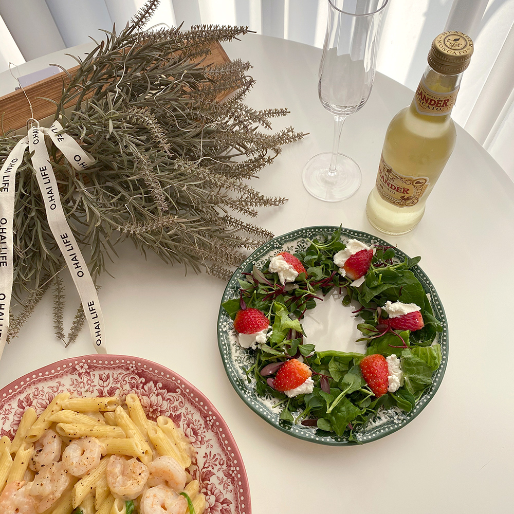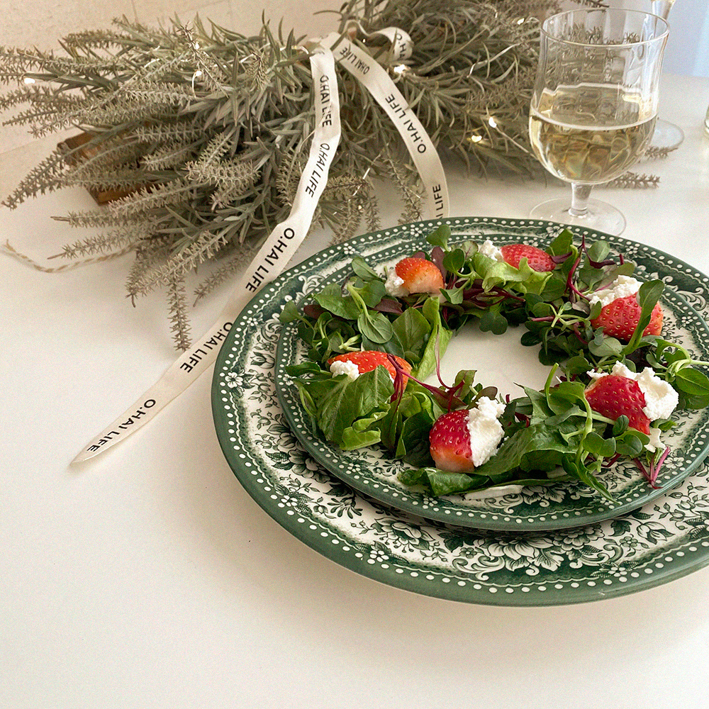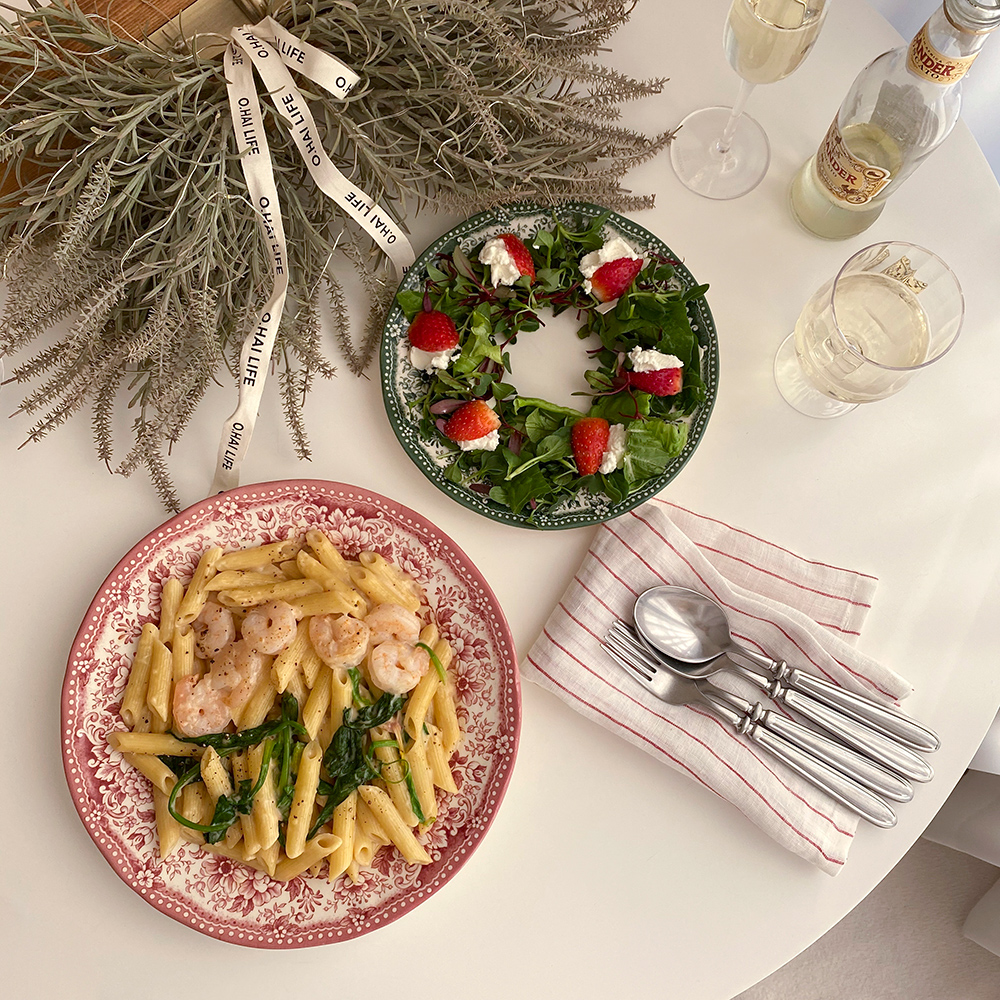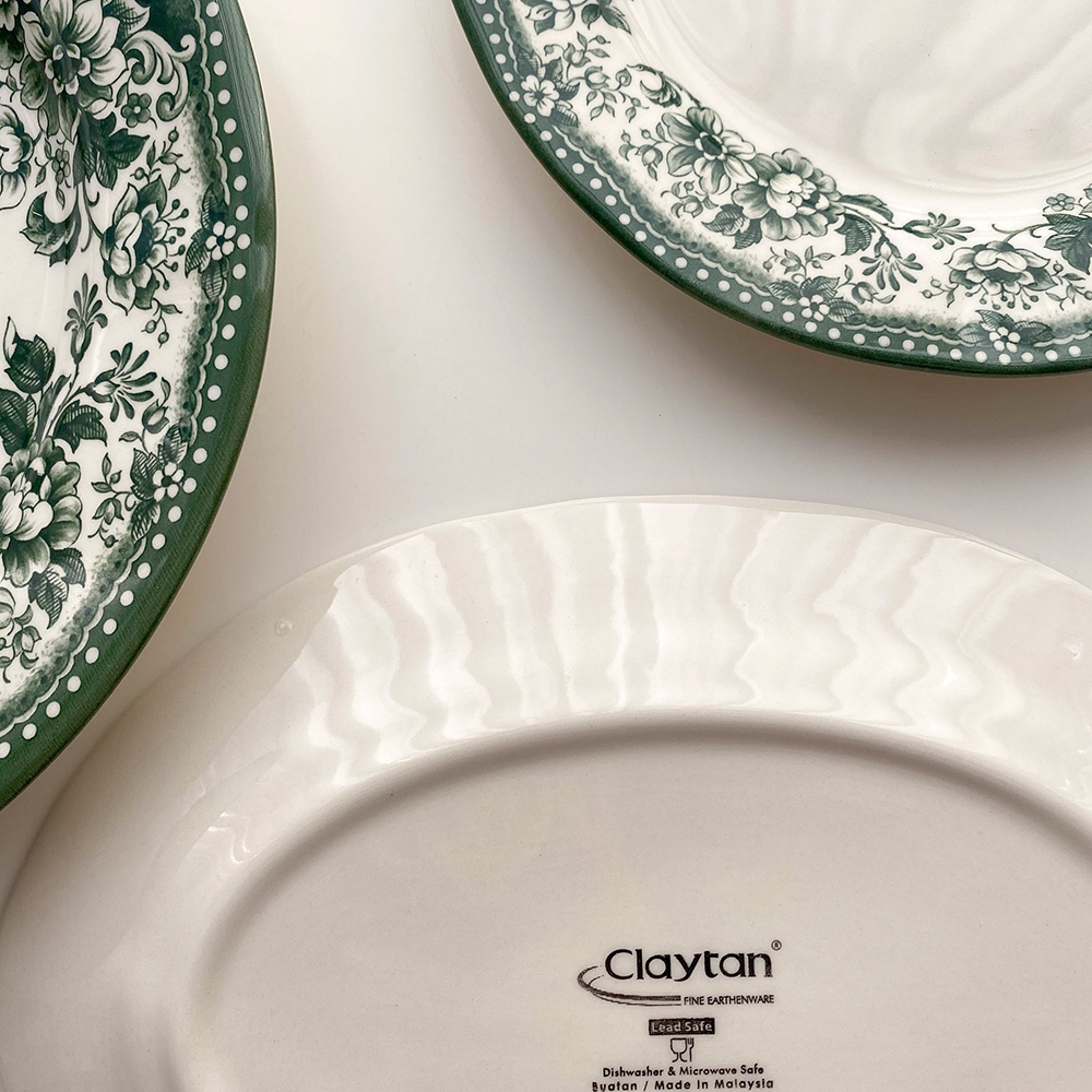빈티지한 무드의 패턴이 아름다운 클레이탄의 접시 시리즈입니다. 원형 플레이트 두 사이즈와 오발 디쉬로 구성되어 있어요. 원형 플레이트 L 사이즈는 2인분의 파스타를 담거나 메인 디쉬를 담기에 충분히 넉넉한 사이즈입니다. 원형 플레이트 S 사이즈는 앞접시로도 활용하기 좋은 사이즈이지만 큰 사이즈의 프렌치 토스트도 문제없어요. 연말 테이블 세팅에 추천해 드리는 컬러 구성이니 지금부터 다양한 소중한 자리에 함께해 주세요.