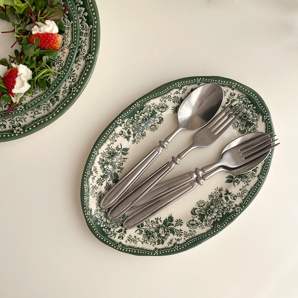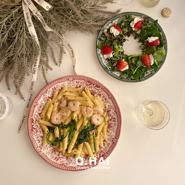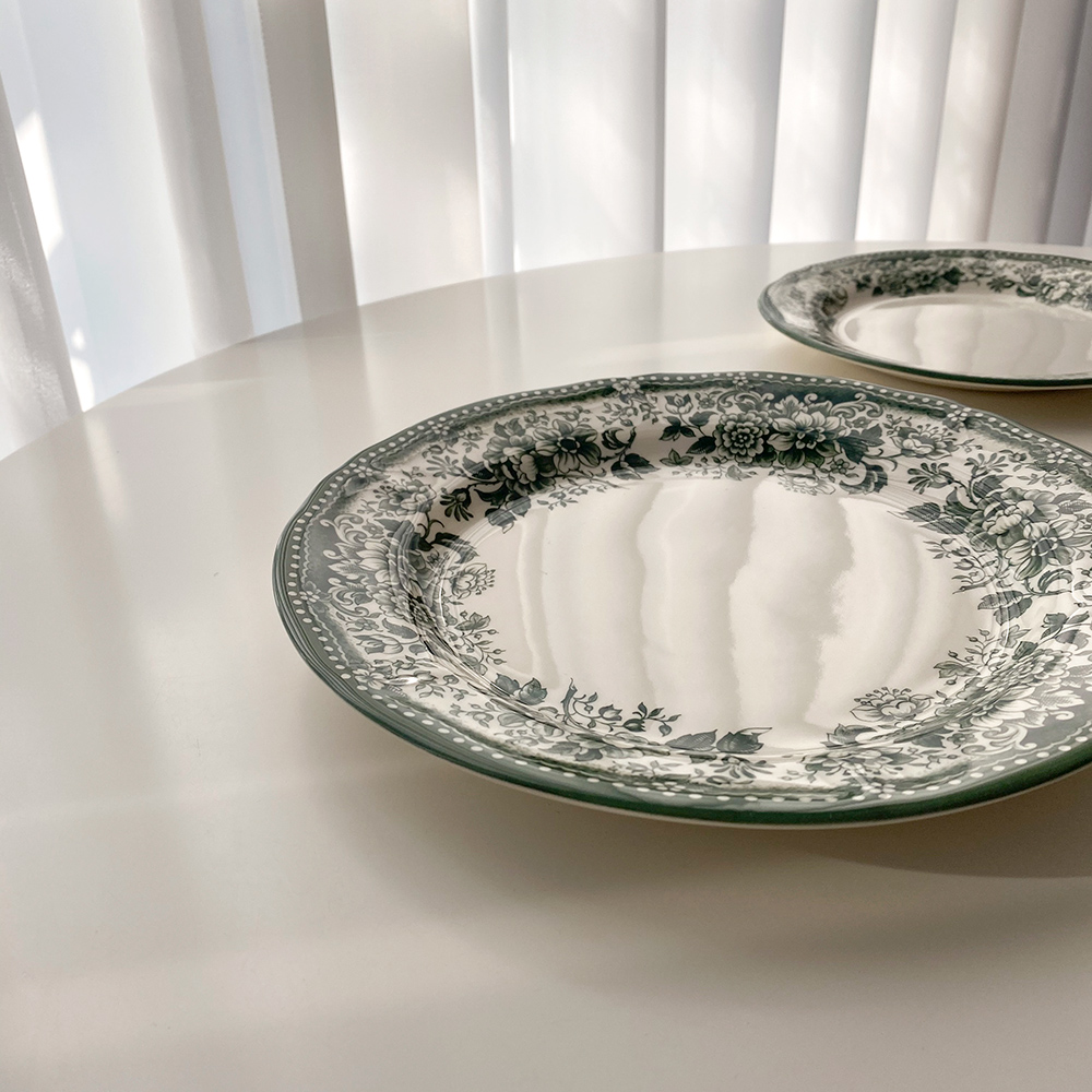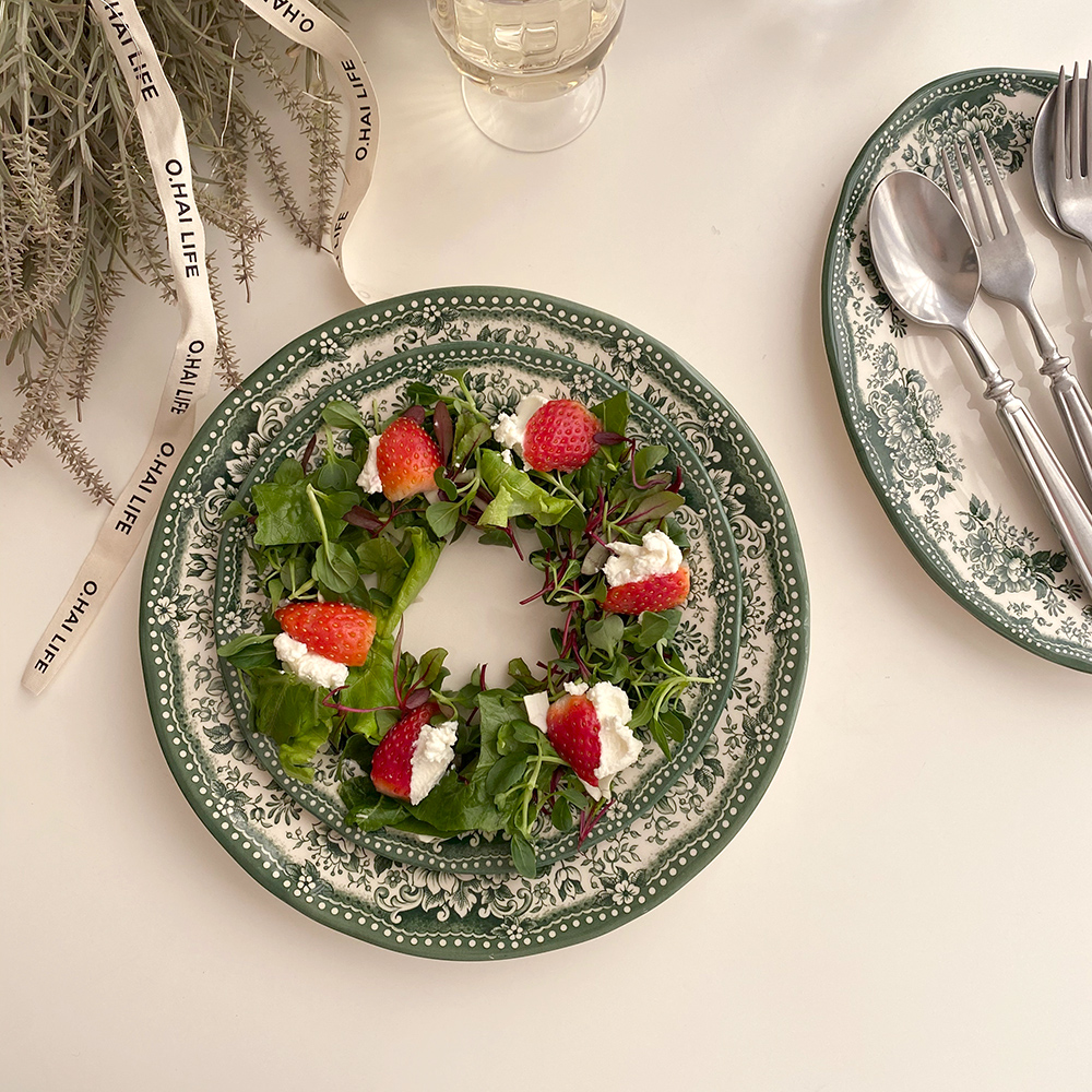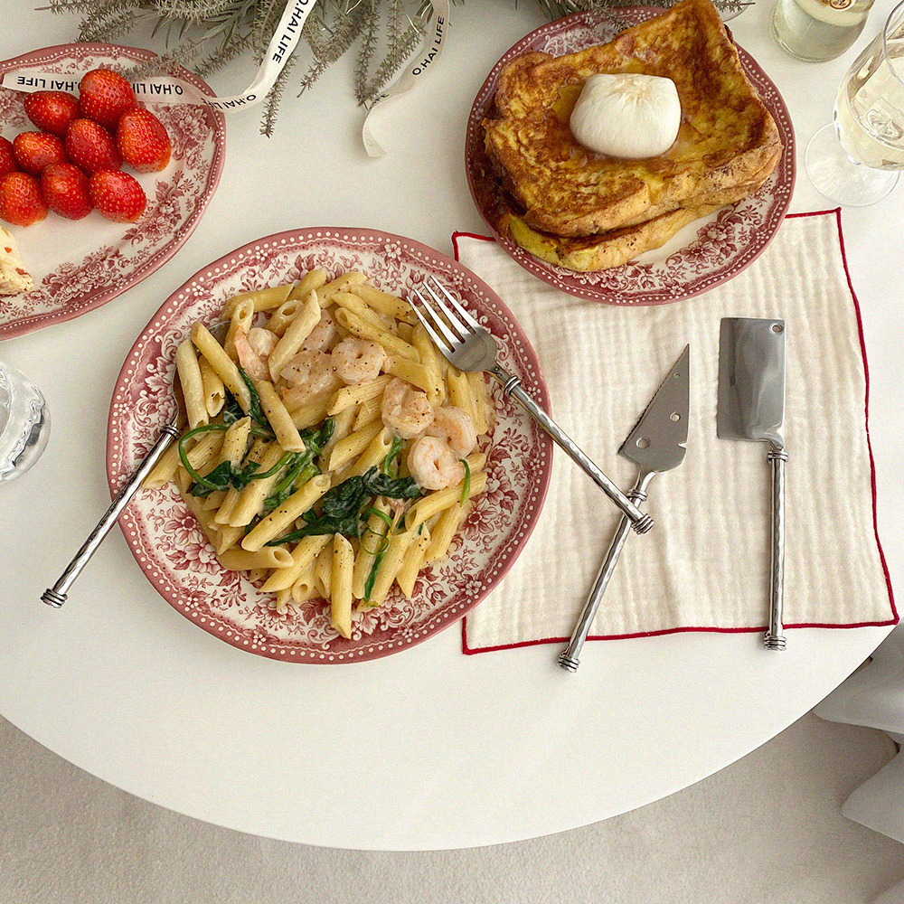 빈티지한 무드의 패턴이 아름다운 클레이탄의 접시 시리즈입니다. 원형 플레이트 두 사이즈와 오발 디쉬로 구성되어 있어요. 원형 플레이트 L 사이즈는 2인분의 파스타를 담거나 메인 디쉬를 담기에 충분히 넉넉한 사이즈입니다. 원형 플레이트 S 사이즈는 앞접시로도 활용하기 좋은 사이즈이지만 큰 사이즈의 프렌치 토스트도 문제없어요. 연말 테이블 세팅에 추천해 드리는 컬러 구성이니 지금부터 다양한 소중한 자리에 함께해 주세요.