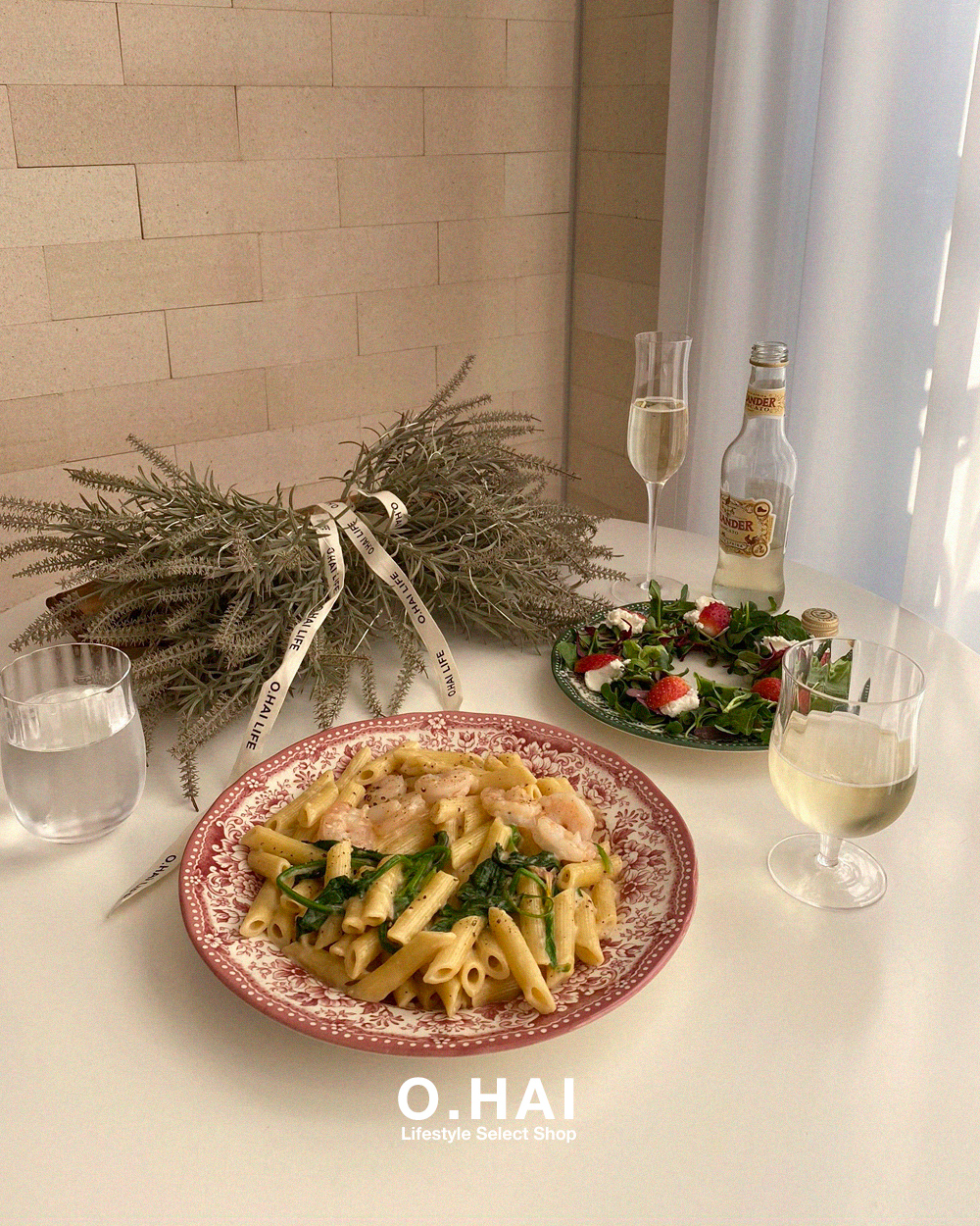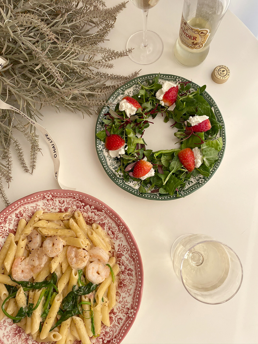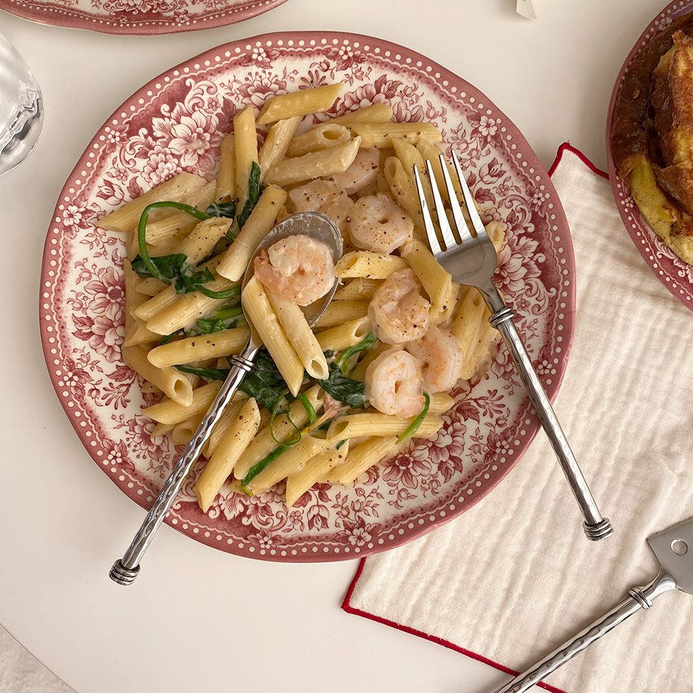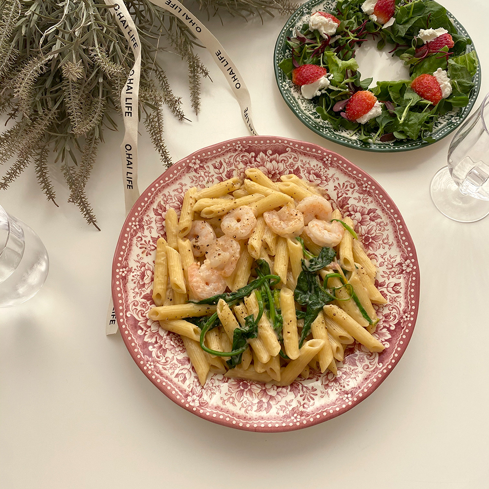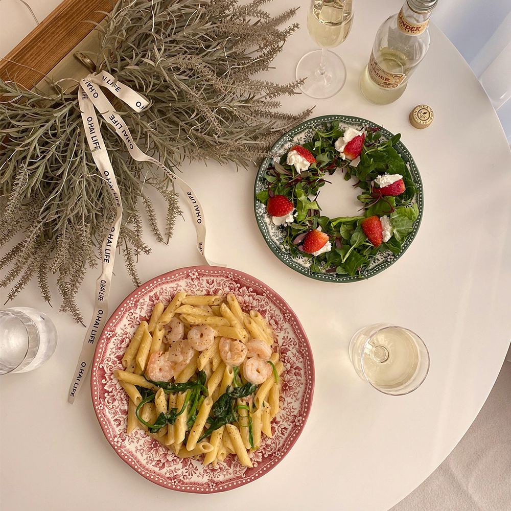 원형 플레이트 L 사이즈는 2인분의 파스타를 담거나