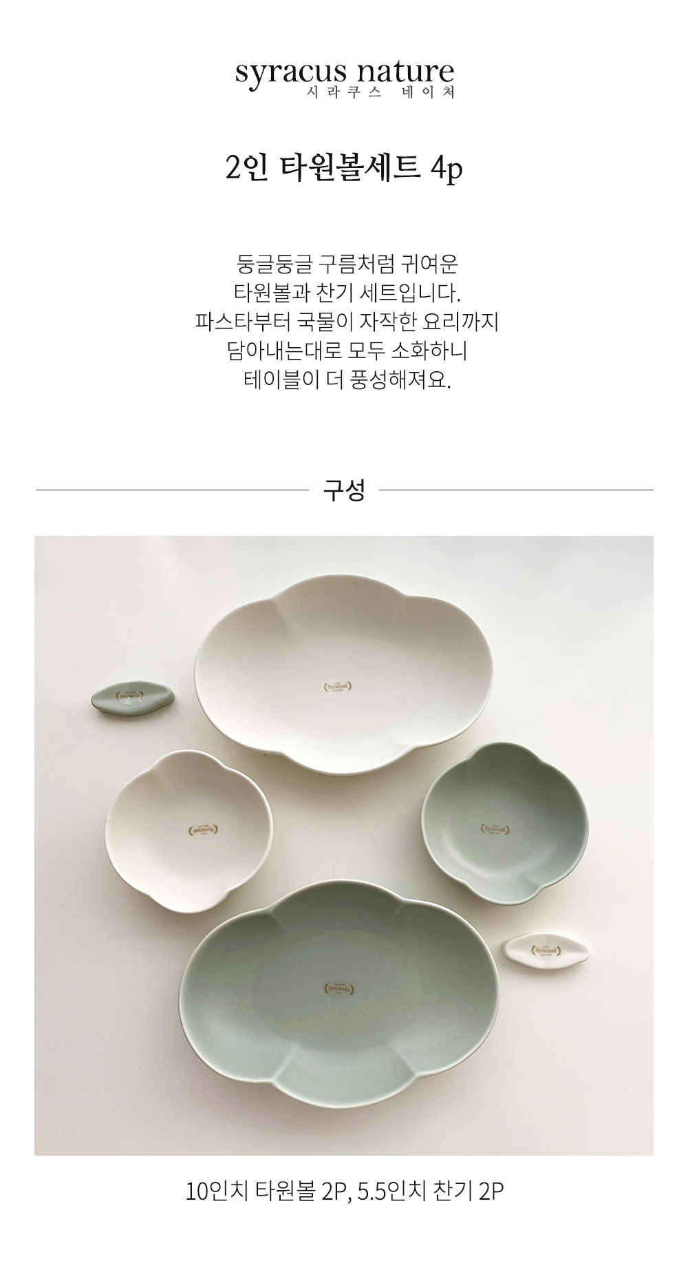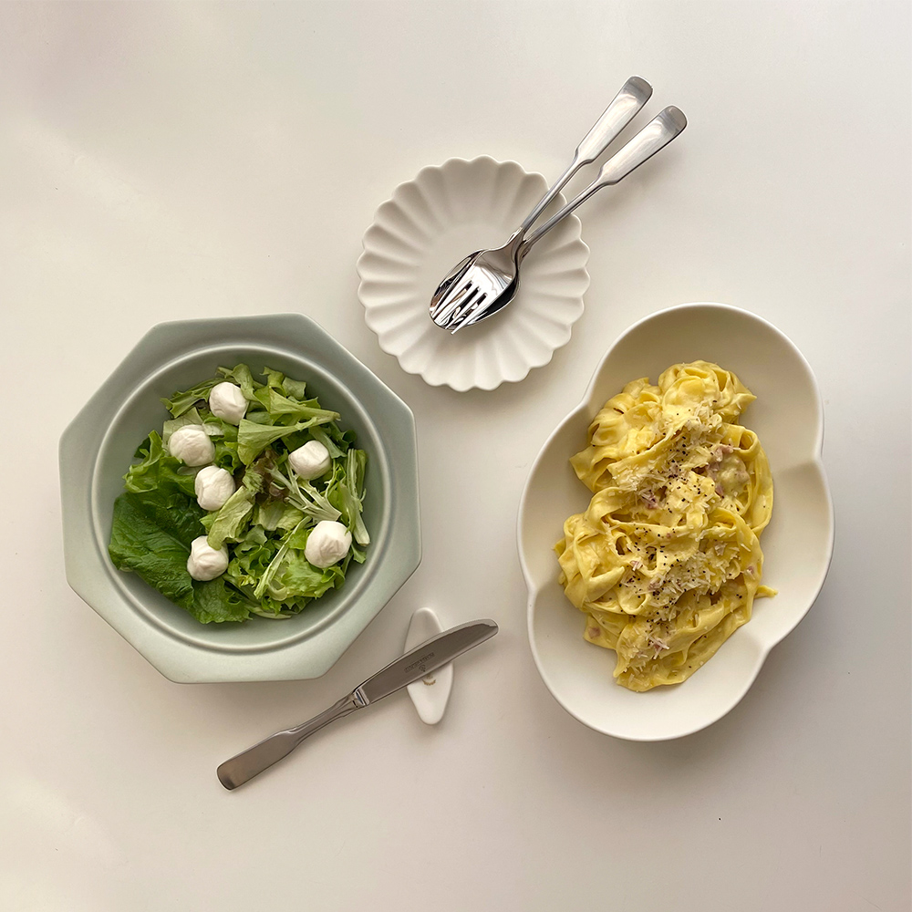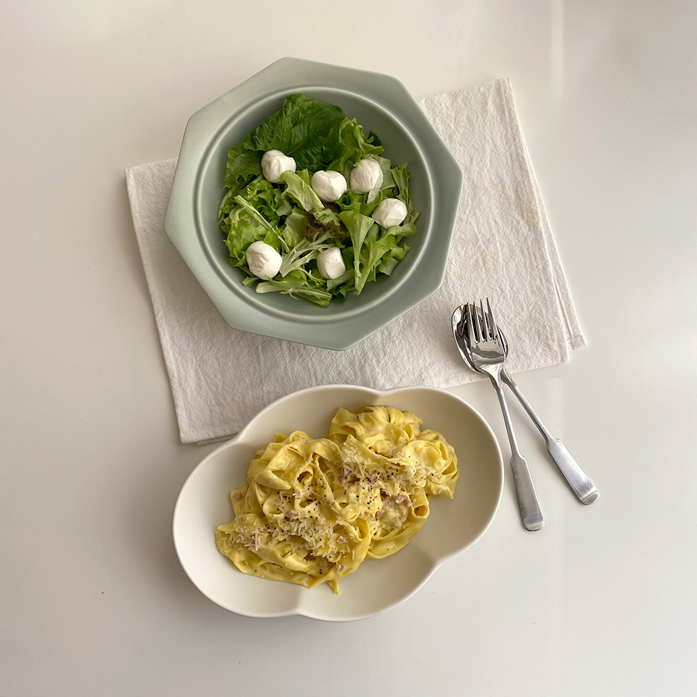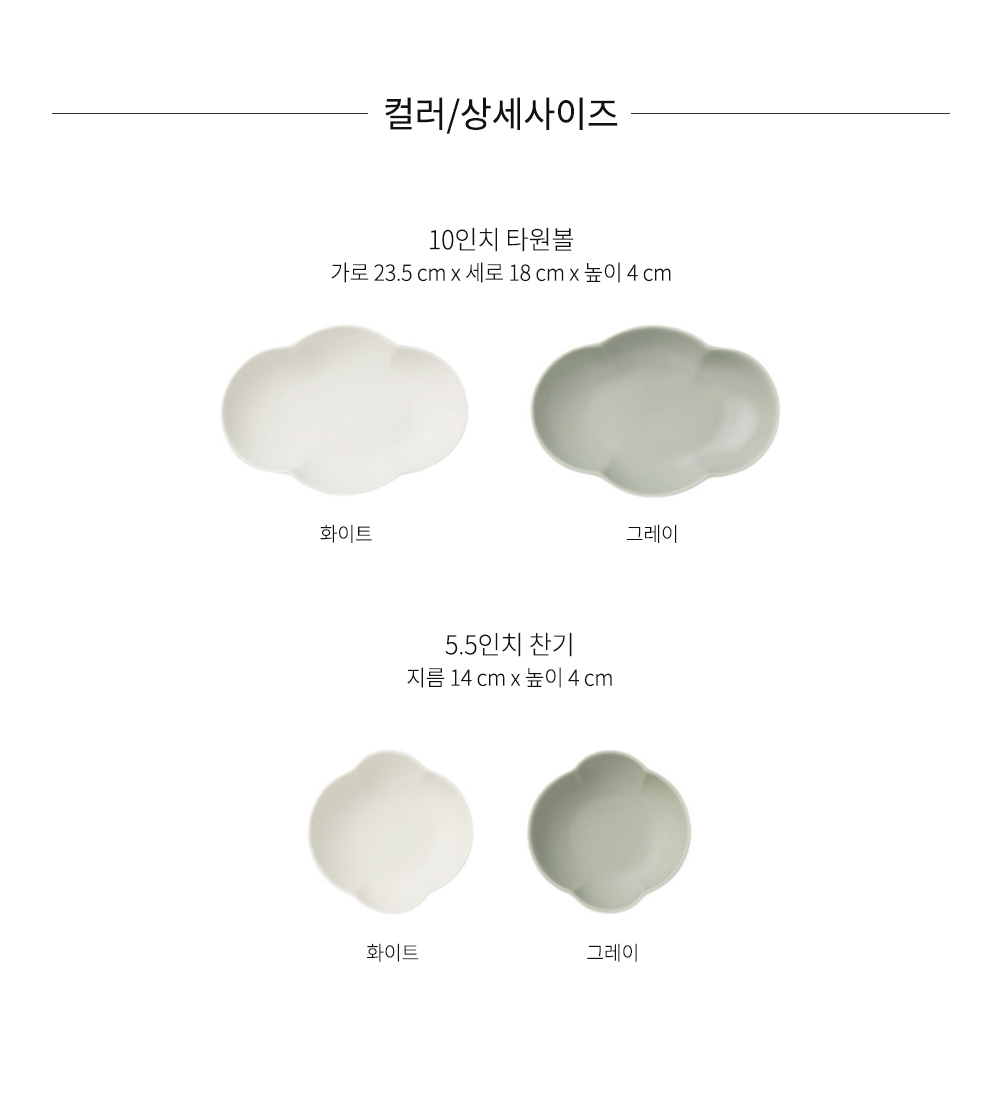둥글둥글 구름처럼 귀여운 타원볼과 찬기 세트입니다. 파스타부터 국물이 자작한 요리까지 담아내는대로 모두 소화하니 테이블이 더욱 풍성해져요. 4P 모두를 한 테이블에 세팅하여도, 개별로 사용하셔도 좋은 구성입니다.